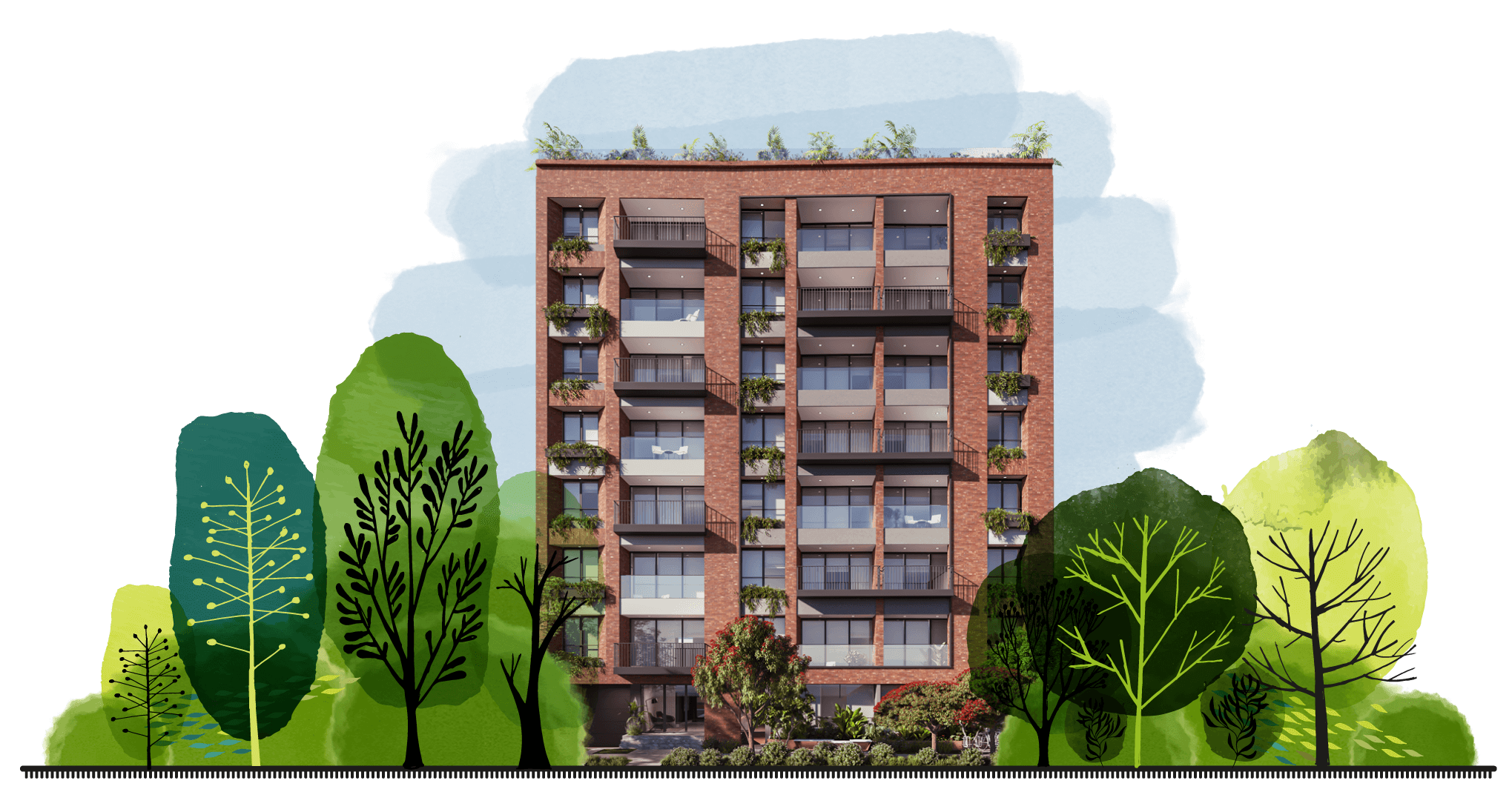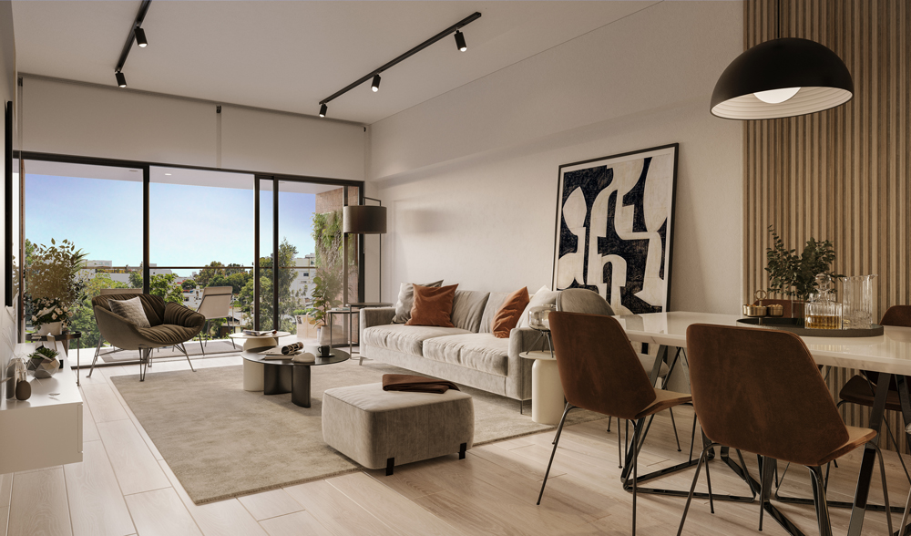 Todos los departamentos tienen terraza con vista a la calle, para gozar del exterior sin salir de casa. Espacios amplios y luminosos.